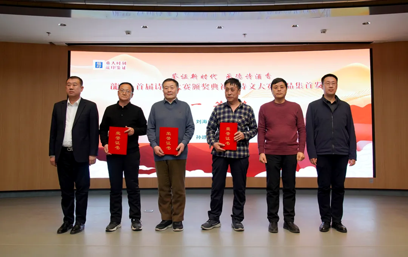 另外,板城酒業將本次所有優秀作品集結成冊,以詩集的形式將這些文學作品永久保存下來,傳世益人,在承德的文學發展史上留下了美好印記。最后,板城酒業黨委書記、總經理張春生和承德市郭小川研究會會長步九江共同為《鑒證新時代 承德詩酒香——龍印·首屆詩文大賽作品集》揭幕。