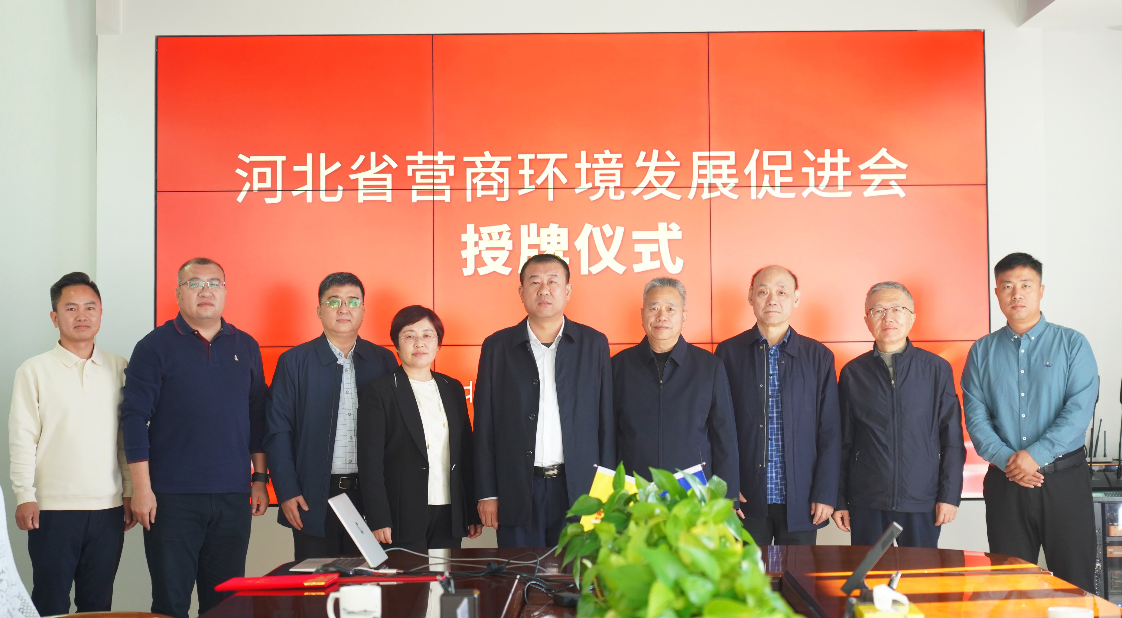 河北省營商環境發展促進會會長白士軒為板城酒業頒發“營商環境監測點”牌匾。