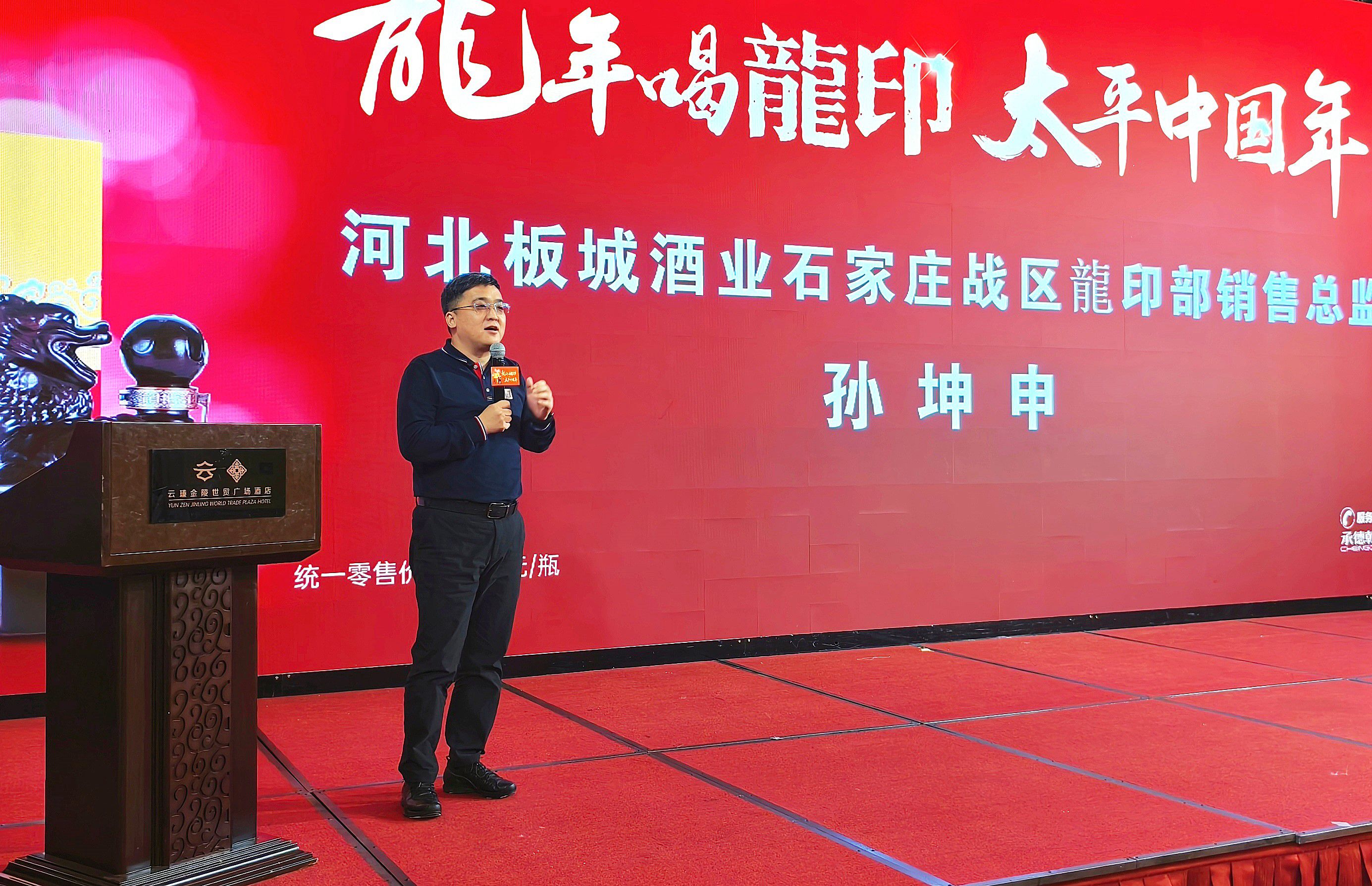 板城酒業石家莊戰區龍印部銷售總監孫坤申發表講話