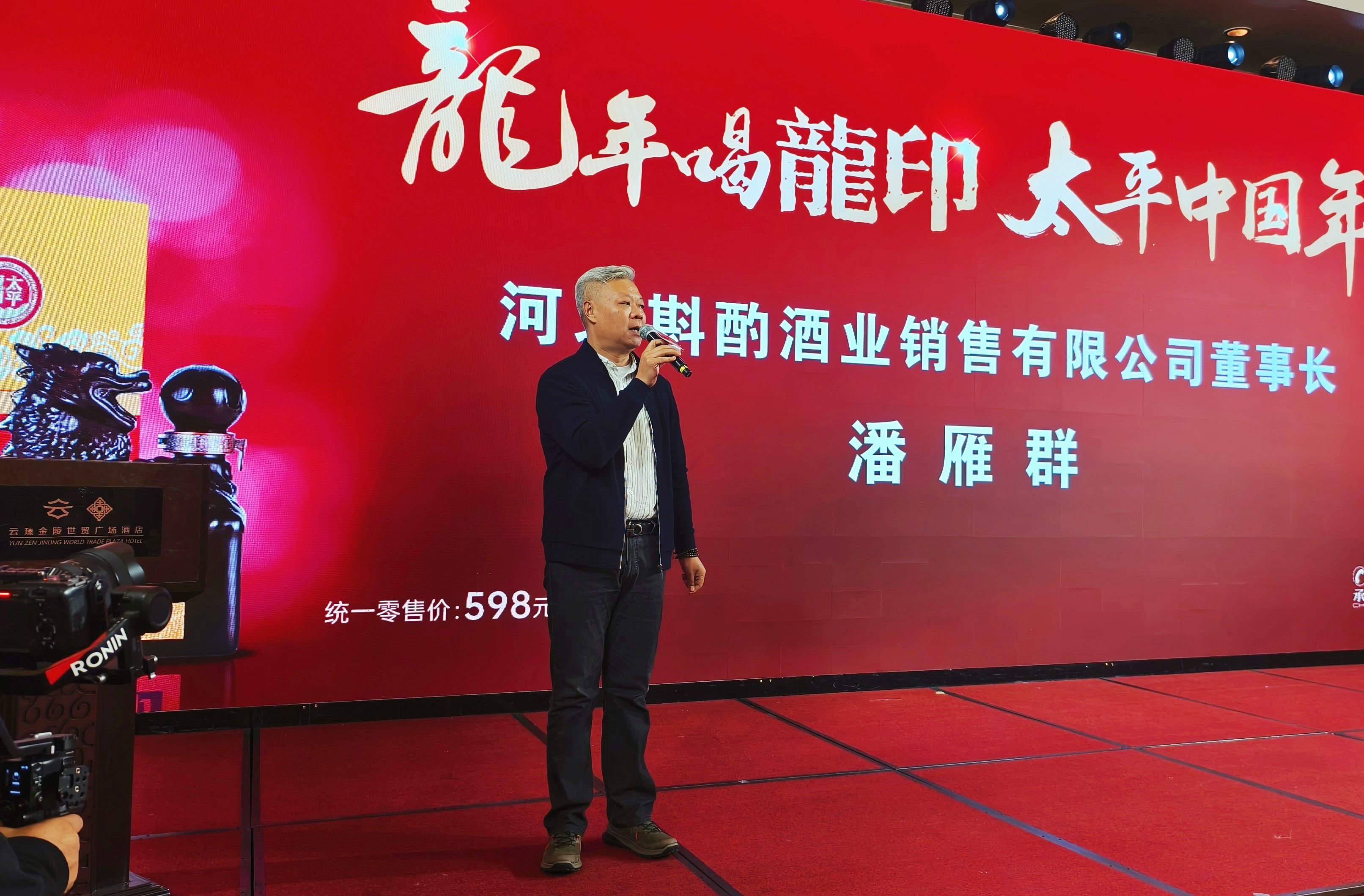河北斟酌酒業銷售有限公司董事長潘雁群發表講話,他講到,龍印承載著板城酒業的歷史與文化,在石家莊市場激烈的競爭環境中,保持著較強的競爭力,在中秋期間銷售同比增長26.6%,為2024年產品銷售的倍增奠定了堅實的基礎。