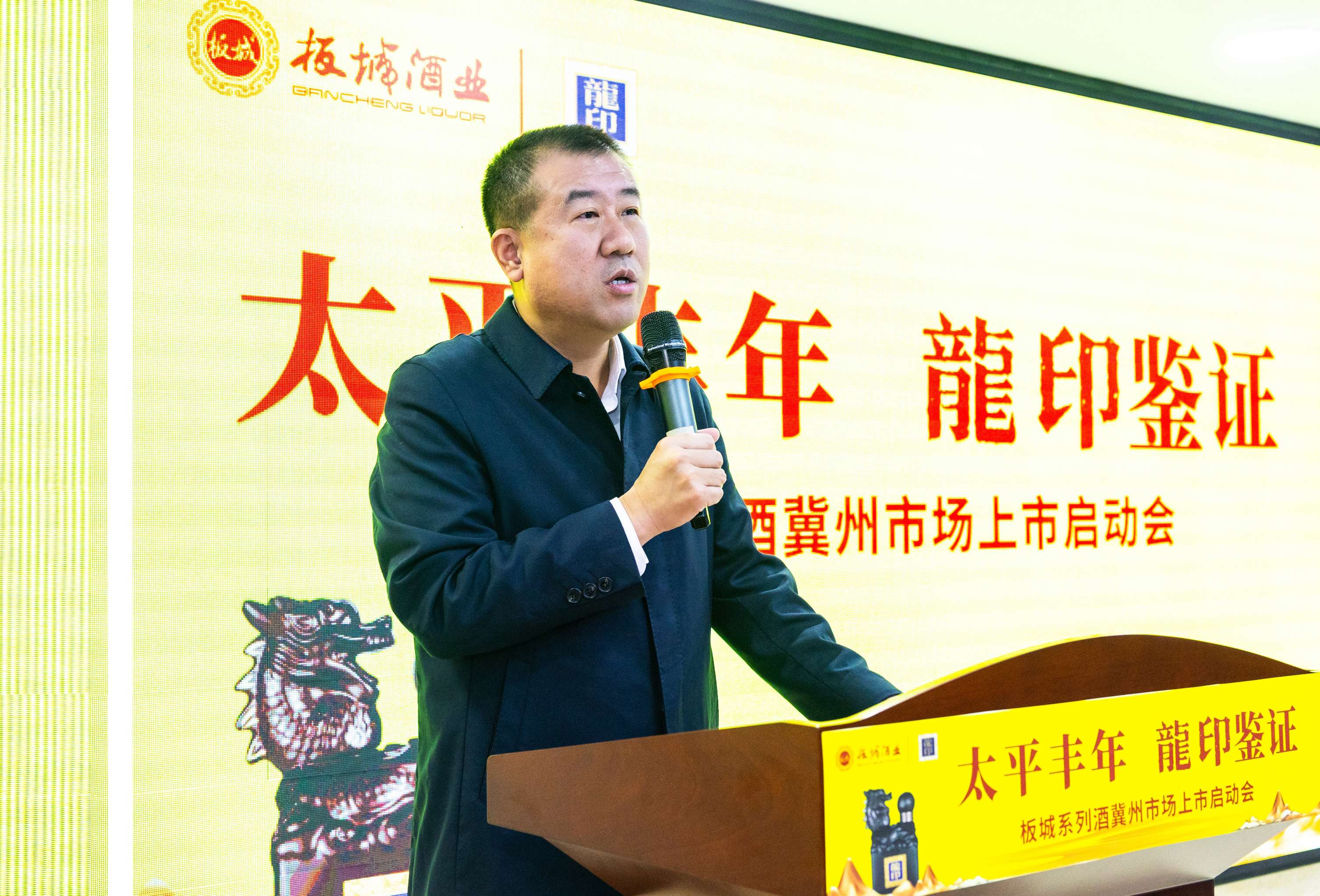 衡水福厚潤商貿有限公司董事長王來平發表講話,從板城酒業的歷史與衡水老白干的淵源,到板城酒業多年來的發展,再到板城的品牌實力及酒水品質,充分肯定了板城面對市場變化的創新與發展,同時對板城在衡水冀州市場的上市表達衷心的祝愿與期待。