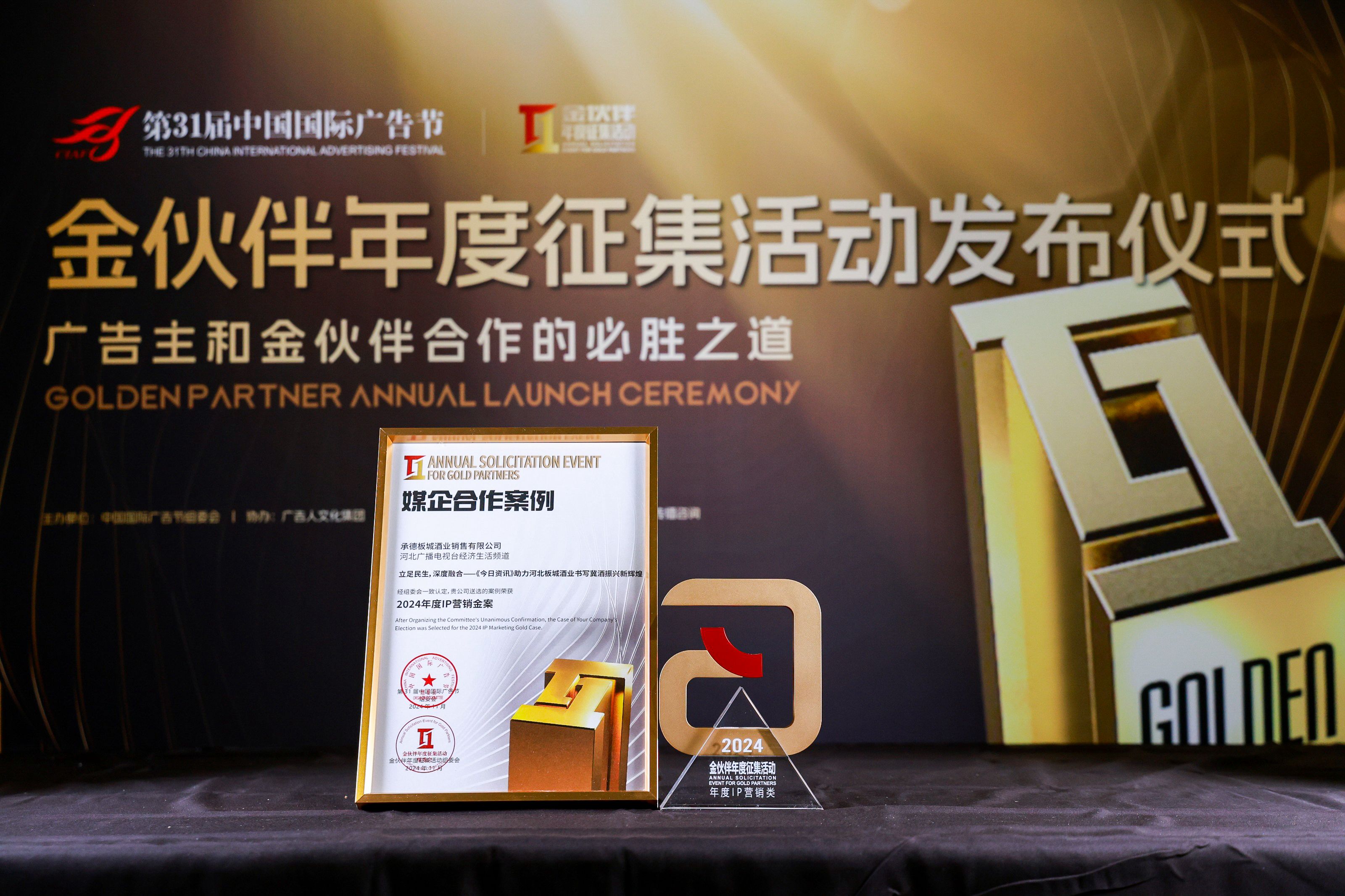 板城酒業與河北經濟生活頻道合作案例【立足民生,深度融合《今日資訊》助力板城酒業書寫冀酒振興新輝煌】入選31屆中國國際廣告節·2024廣告主金伙伴年度征集發布儀式·媒企合作案例·年度IP營銷金案;