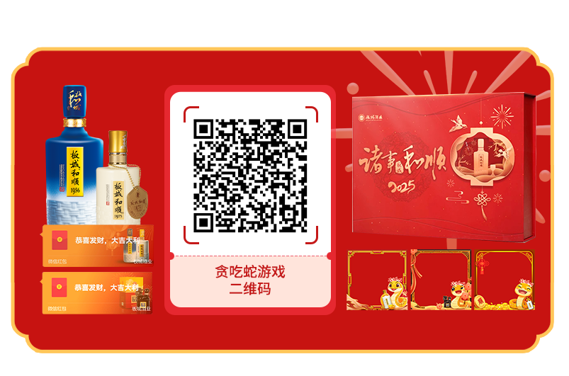 喜迎新春,讓年味更濃!板城酒業新年系列活動火熱進行中,識別下方二維碼,參與【諸事和順好運貪吃蛇】游戲,贏取超多年禮好物,為2025年開啟整年好運!