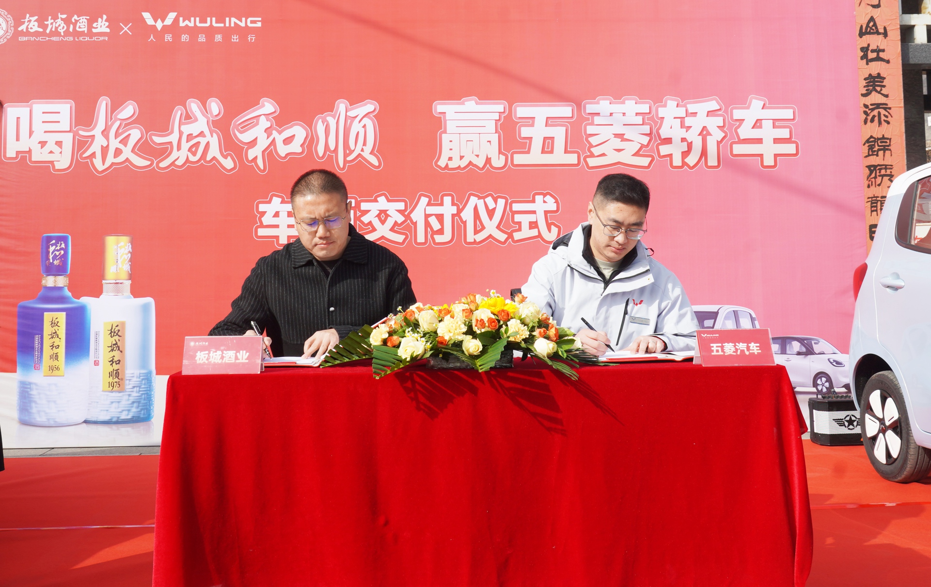 在活動現場,板城酒業銷售市場總監王曉波與五菱汽車承德駿盛4S店市場總監呂呈濤共同簽署了《五菱宏光MINIEV汽車交付協議》。