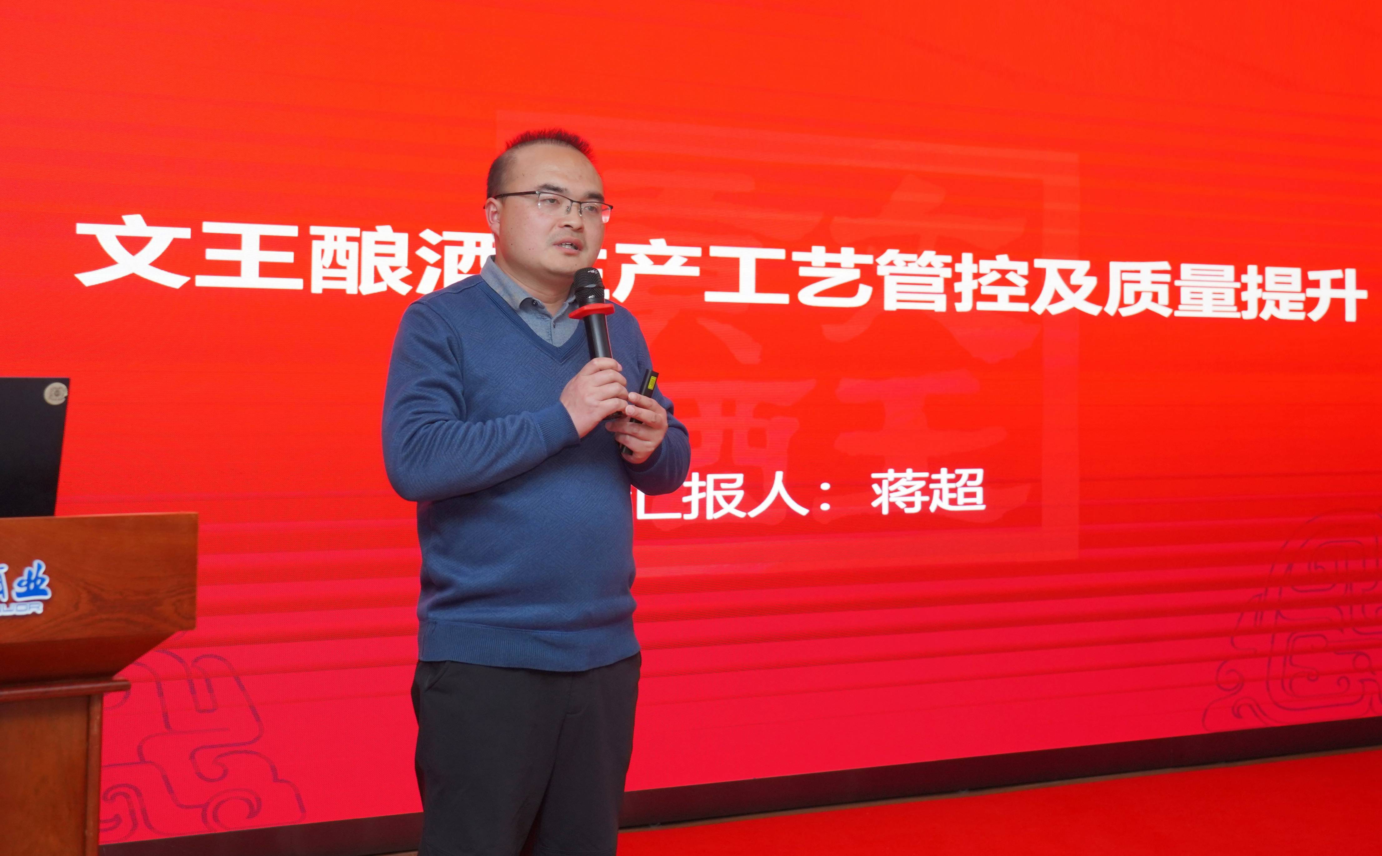 文王生產釀酒部總監蔣超對“生產工藝管控及質量提升”展開專題講座。蔣超總監從技術創新、設備升級、人才培養等方面,闡述了文王酒業在提升產品品質和精細化管理方面的探索與實踐。