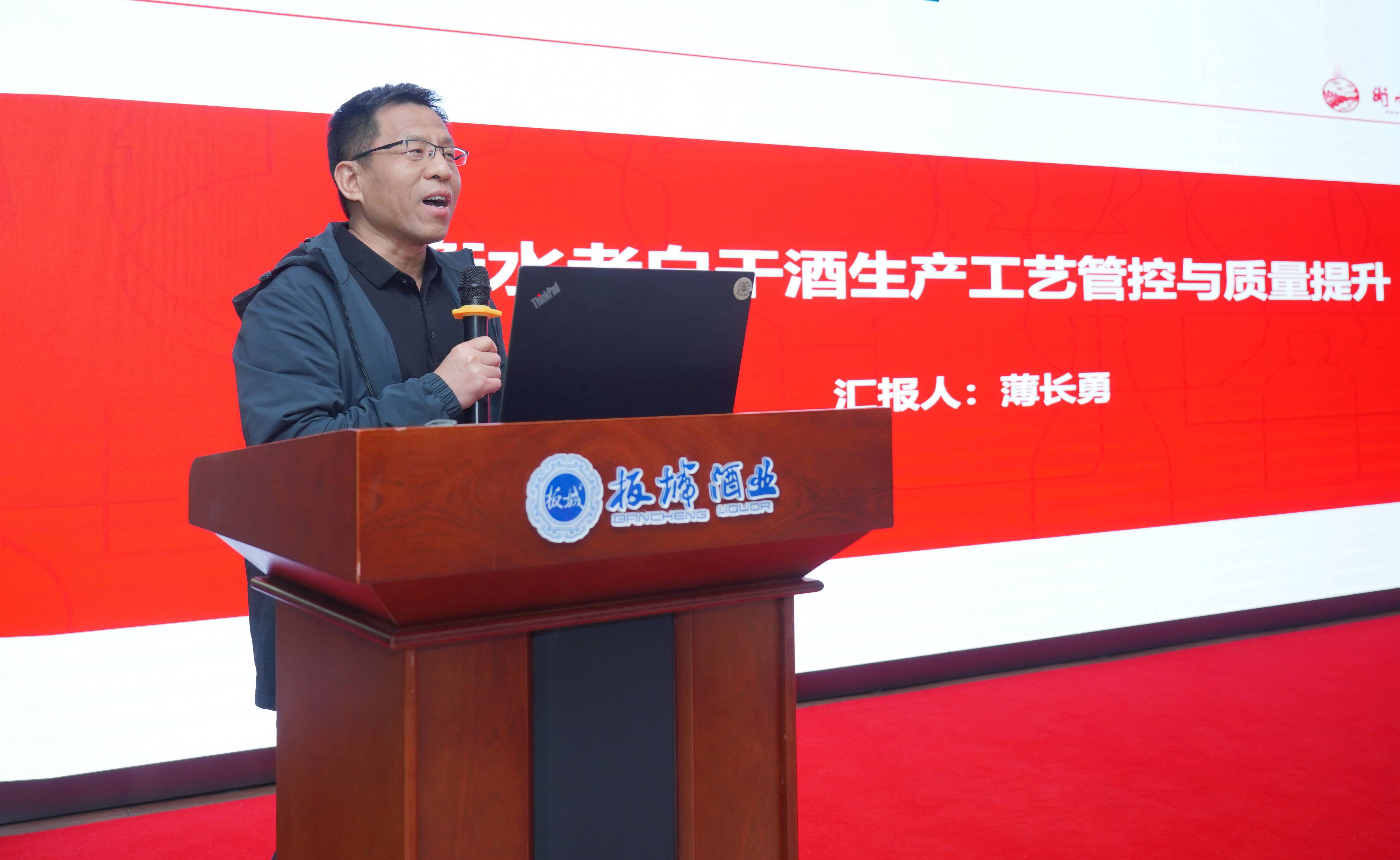 衡水老白干酒業制酒一車間副主任薄長勇就“生產工藝管控及質量提升”進行專題講座。薄長勇副主任結合自身多年工作經驗,分享了衡水老白干釀酒質量管控提升的發展歷程,并分享了標準化工藝管控和精細化質量提升的成功經驗。