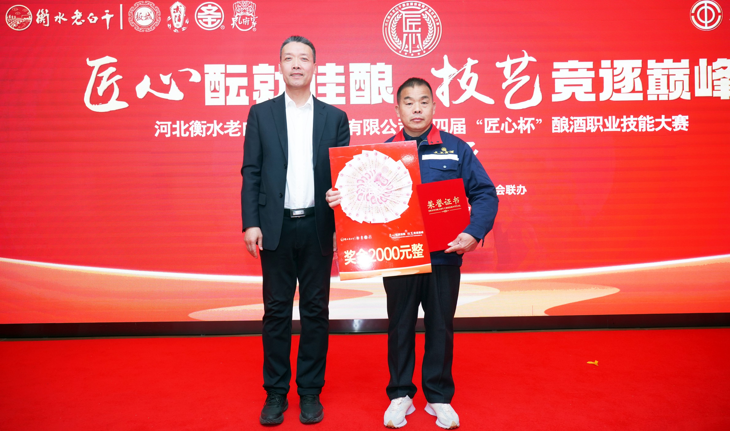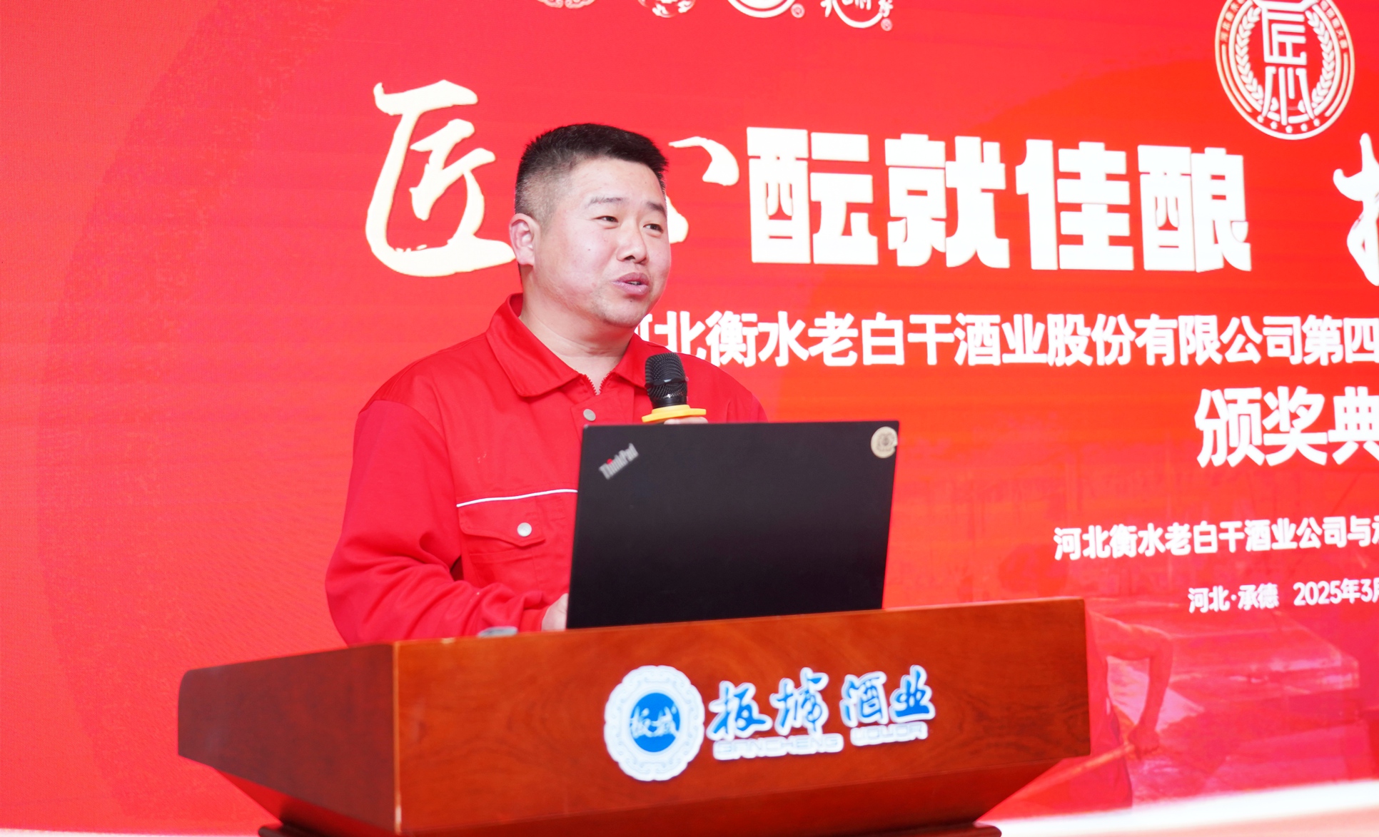 衡水老白干酒業(yè)公司工會副主席孔衛(wèi)東宣讀本次大賽獲獎名單,宣布對獲獎選手進行表彰,大賽中36名優(yōu)秀選手經過激烈角逐,最終產生“釀酒狀元”1名,“杰出工匠”5名,“技術能手”12名,“優(yōu)秀選手”18名;本次新增設“匠心傳承獎”1名。