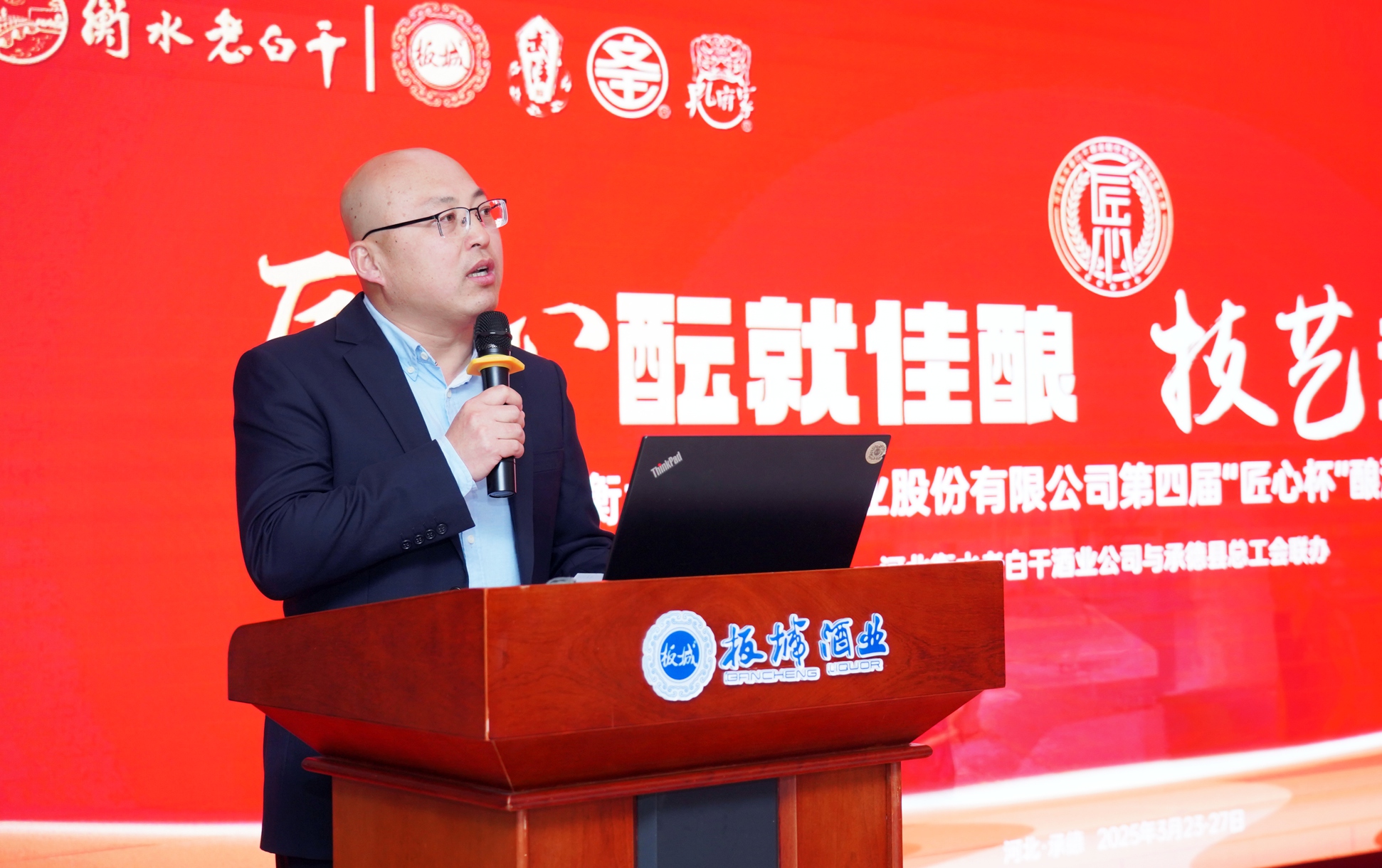閉幕式中,由衡水老白干酒業(yè)公司技術中心副主任王新磊針對本屆“匠心杯”大賽的開展情況進行總結匯報。一是組織籌備,科學規(guī)范、保障有力;大賽提前謀劃、起草比賽規(guī)則,實時溝通,精心布置,確保賽事高效運轉。二是賽程設計注重實效,大賽比賽項目包含理論考試、評酒能力、釀酒實操技能三個部分,期間穿插進行了釀酒生產工藝管控及質量提升專題講座和小改小革分享。在大賽中及時發(fā)現比賽規(guī)則評判標準與實際操作上的不足并及時進行修正,有序保障比賽活動的有序、嚴謹進行。