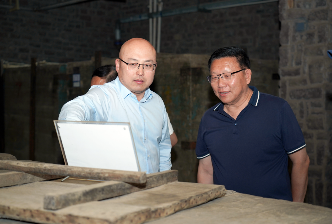 沈重武一行首先參觀了板城燒鍋酒博物館,通過珍貴的歷史文物、詳實的圖文資料及沉浸式場景展示,深入了解板城燒鍋酒跨越三百年的發展歷程。聆聽了百年老店慶元亨與老五甑工藝傳承發展的歷史文化故事,展現著板城酒業深厚的文化底蘊。