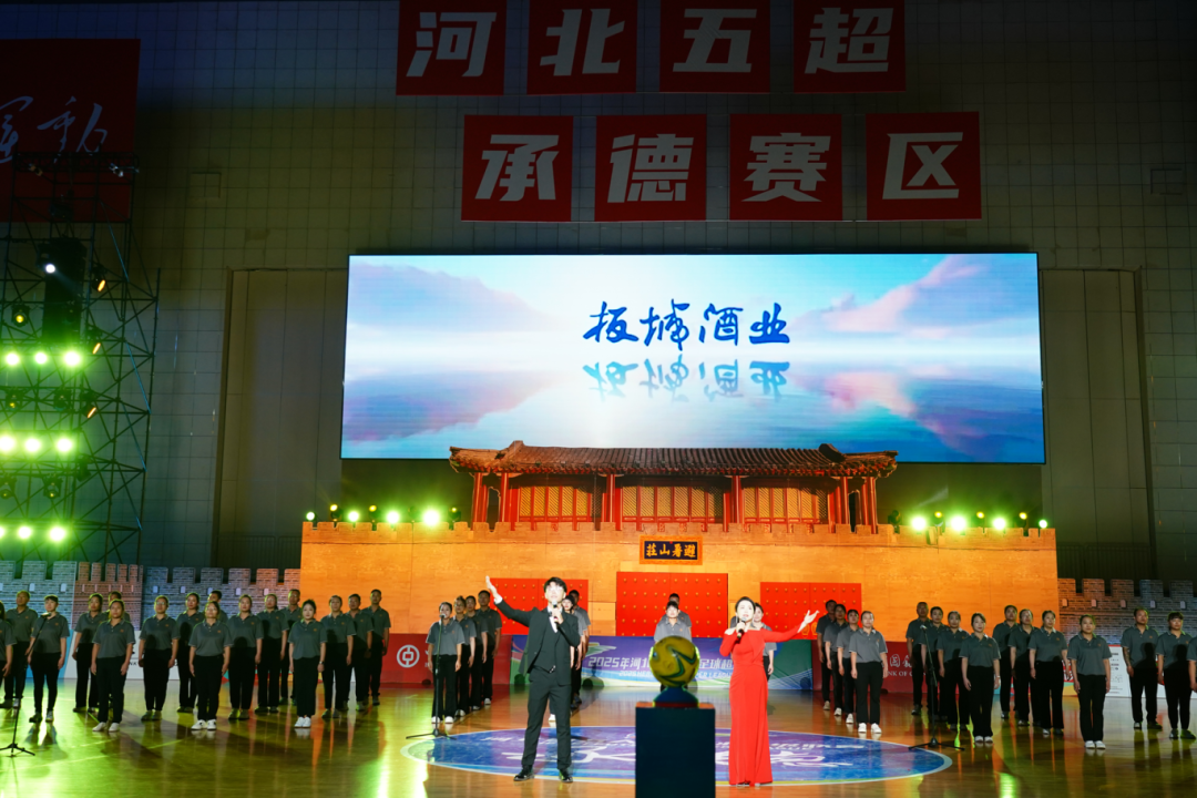 河北五超聯賽承德賽區第四場在《天地一杯酒》的恢弘歌聲中拉開帷幕。板城酒業60名職工與承德籍歌手組成的合唱團,用飽含深情的演唱,唱響了燕趙大地的豪邁氣概,也唱響了板城人“以品質為基,以文化為魂”的堅守,展現了板城酒業在時代浪潮中砥礪前行、永不止步的使命與擔當!