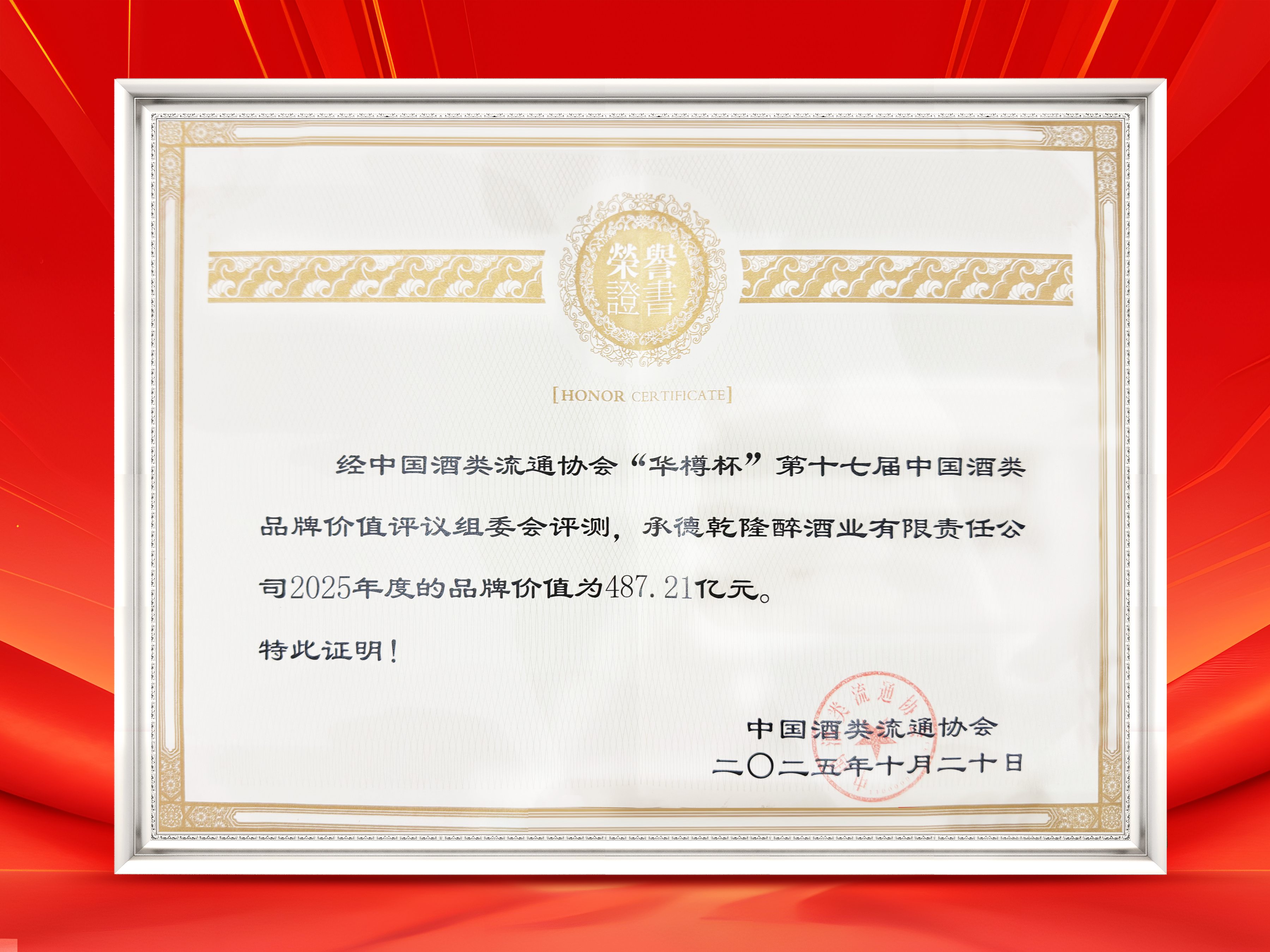 榮譽加冕,再創輝煌。在今日揭曉的第十七屆“華樽杯”中國酒類品牌價值評議中,承德乾隆醉酒業有限責任公司(板城酒業)表現搶眼,品牌價值高達487.21億元,較去年實現顯著增長,位列中國白酒行業第25位,較去年提升五位。這一成績不僅彰顯了企業強大的綜合實力,更體現了行業專家與市場對板城品牌的高度認可。