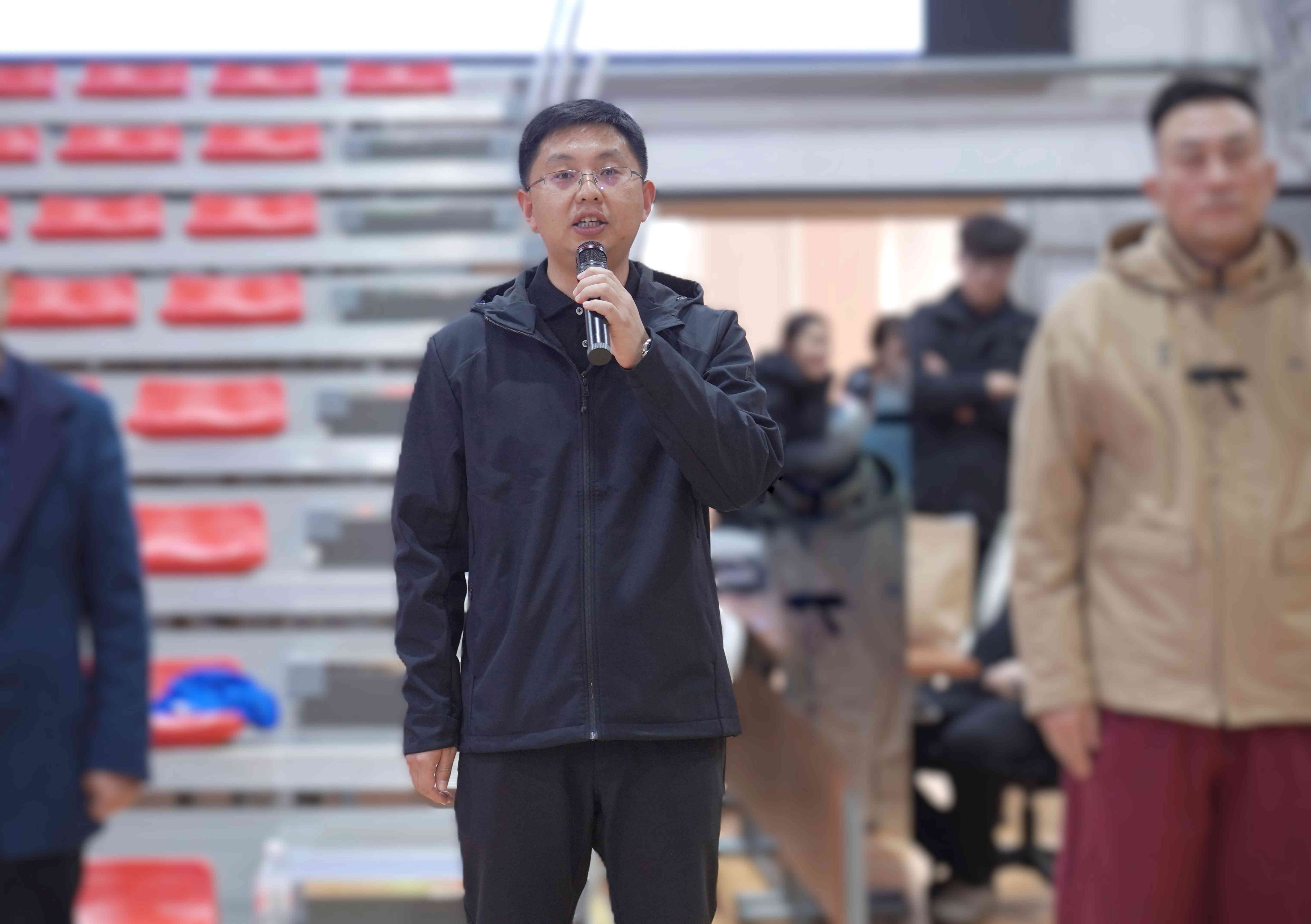 河北板城酒業銷售市場總監王曉波致辭:“承德這片土地孕育的‘和合共生’精神,與板城酒業秉持的‘和順’文化一脈相承。我們期待本屆賽事不僅能展現競技體育的激情,更能讓同學們在團隊協作中品味成長之味,讓‘板城和順’的醇厚與青春的汗水交融,共釀今冬最美記憶。”