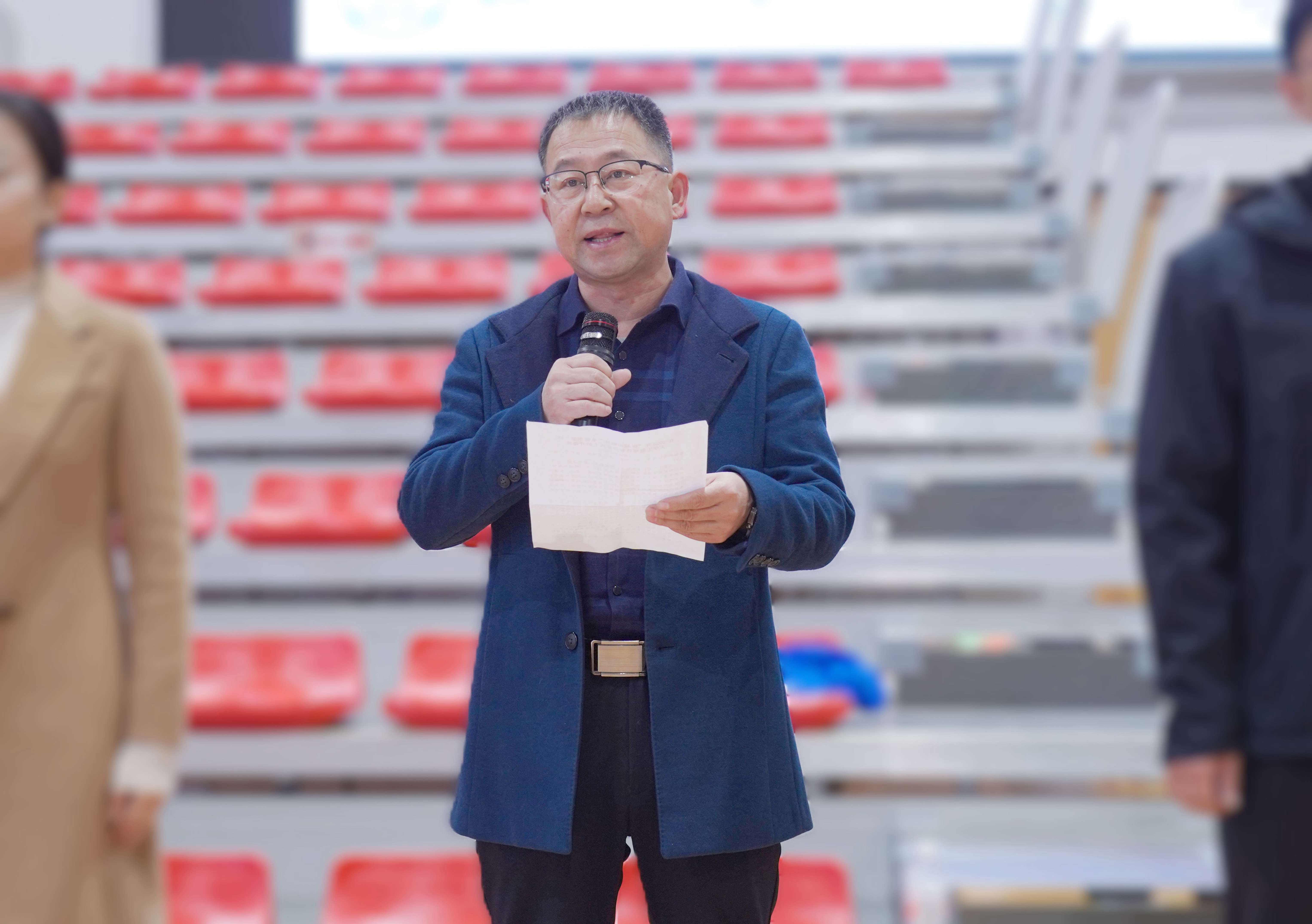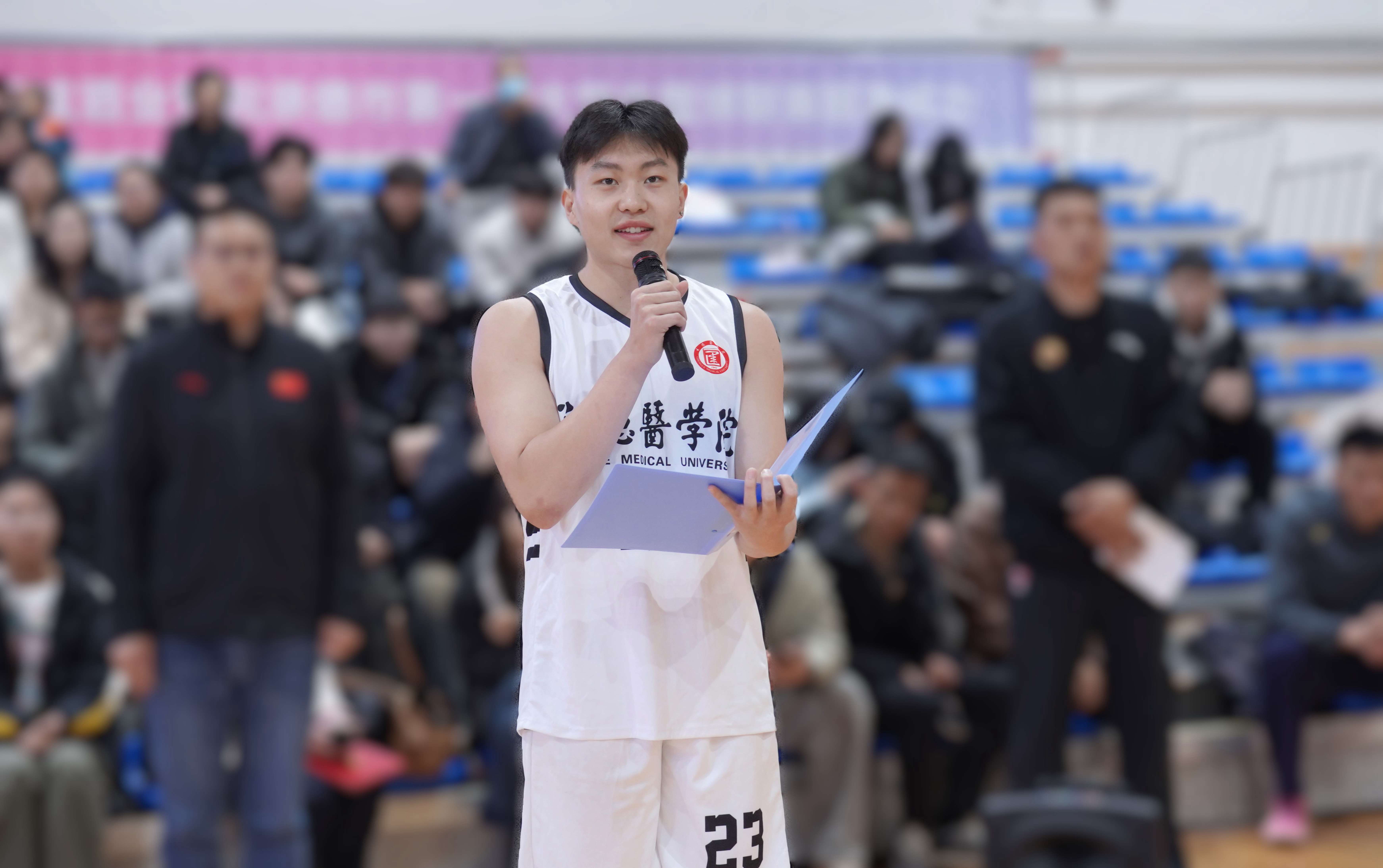 承德醫學院黨委常委、副校長郭玉成致開幕詞,郭校長在開幕辭中勉勵學子,恪守校訓,將籃球賽場上的拼搏與協作化為成長養分。他高度肯定了“板城和順杯”所承載的校企協同育人新模式,這不僅是一次體育賽事,更是校企雙方深化合作、共育棟梁的生動實踐,展現了企業回饋社會、助力教育發展的責任擔當。